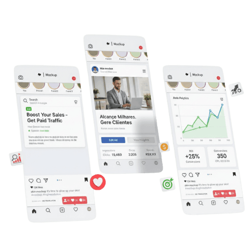 Campanhas de anúncios de alta performance para alcançar o cliente certo, na hora certa, e escalar suas vendas.